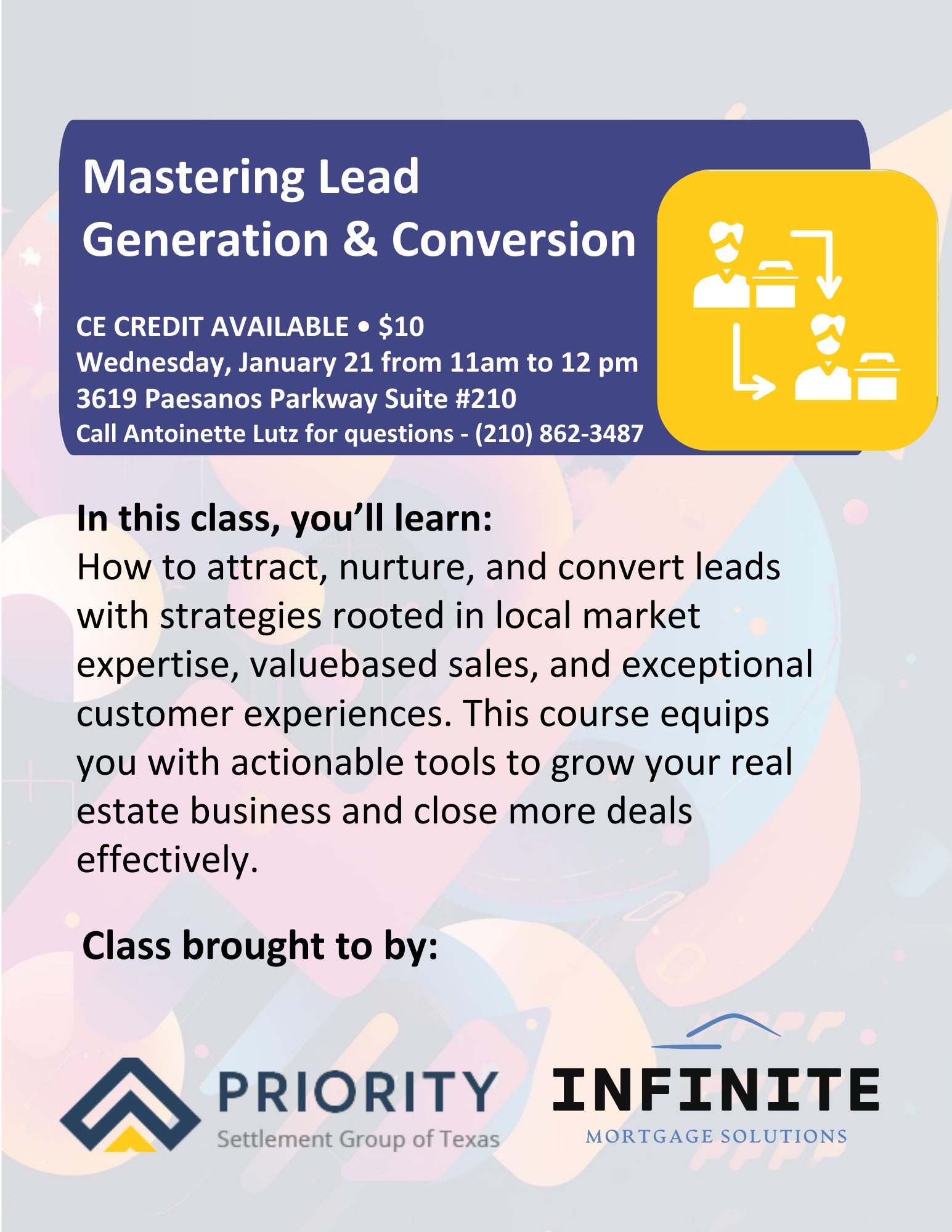 Learn to attract, nurture, and convert leads with strategies rooted in local market expertise, valuebased sales, and exceptional customer experiences. This course equips you with actionable tools to grow your real estate business and close more deals effectively.
